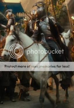 One interesting point of reference for the leader's guard when outdoors... look! Helmets! Armour of Elrond's hunting party. Still got that shiny element you'd expect of Elves