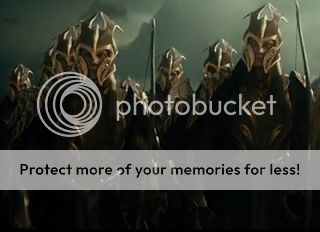 ... another look, sans helms (Slight OT: oooh... lookie those swords! Wicked!). It seems more... organic? And could serve somewhat as camoflage in a woodsy setting. But I'm glad to see Mirkwood's been doing right by defence spending. Thranduil certainly learnt that lesson that cost the troops much more lives than they would have suffered just cos of inappropriate gear for the Last Alliance.