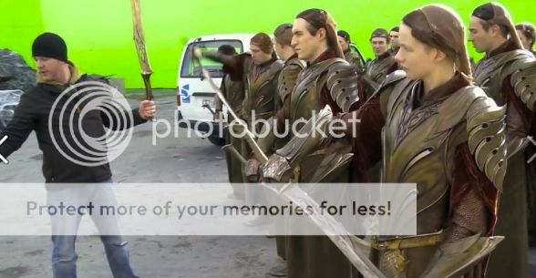 Hey, speaking of helmets...Is it just me, or does it seem like a lot of the major characters in both LOTR or TH never wear a helmet into battle? Sure, there are exceptions to that rule, like Theoden, Eomer, Eowyn, and both Merry and Pippin at certain times. But other than them, I can think of a lot of important characters that don't wear a helmet even when they really should for the sake of their health. Just off the top of my head, in LOTR there's Aragorn, Legolas, Gandalf, Haldir, Elrond, Gil-galad (not that a helmet would have made much difference for him, poor guy). And in TH there's, oh I don't know...all 13 dwarves!, Bilbo, Legolas (again), Tauriel, Bard may wear a helmet during Bo5a but then he may not, and I doubt that if/when we see Elrond, Galadriel, Gandalf, Radagast, and Saruman in action again that any of them will wear helmets, and now we've got Thranduil to add to the list too. I mean, haven't any of them seen those "This is your brain without a helmet" posters?! Exactly. How can any Mirkwood soldier not want to be reminded of the hair-glory and swashbuckling cool the King struts? To the end of the world! Or maybe just into Erebor for now.