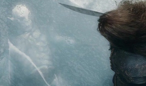 Alrighty then! I hope this picture is clear enough--Thorin and Old Pasty-Face eye to eye through the ice!