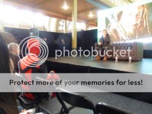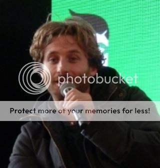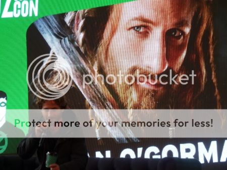 Approx 20 worthwhile minutes queuing to see Dean O'Gorman scored me a seat in the second row – though there was a polite scramble of fangirls, elbows flying and leaping over fold-up chairs, to get there. I had an unencumbered view, as the seat in front of me, reserved for a premium-pass holder, was never filled. This mysterious red ninja never spoke or moved a muscle, and Dean later declared him, with a laugh, to be a trifle unnerving. Clutching a coffee, Dean was very chatty and down to earth in a ‘Kiwi guy’ way that is very familiar to me. He dived straight in to answer questions and tell stories of life on the TH shoot, and these are some of the things I remember: