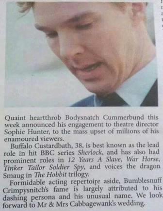 I see stuff like this on Pinterest all the time! There's some really hilarious ones out there, but this is probably one of my favorites! I really hope this is a gag, though, and not how they really announced his engagement. I would hate to have that happen to me. Seriously, though, no one even tries anymore. He's become famous for being the only actor to portray Sherlock Holmes whose actual name is weirder than his character's!